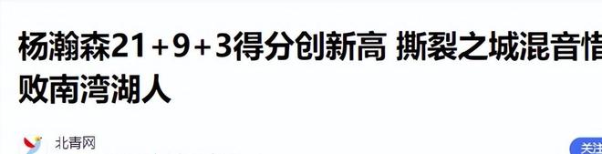 北青网(杨瀚森21+9+3得分创新高 撕裂之城混音惜败南湾湖人2025.11.17)