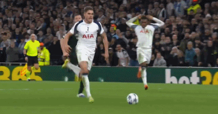 第64分钟,范德芬长途奔袭劲射破门,热刺3-0